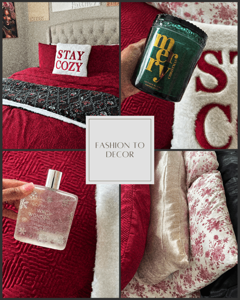 OH and a good candle. I was able to find two Christmas themed candles that really brought my entire room and ambiance together. It’s half way through december so things were beginning to be slashed and on sale. I think I spent around $13 total for two candles (gabe’s). Gabe’s discount is another goodie for home decor and clothing.