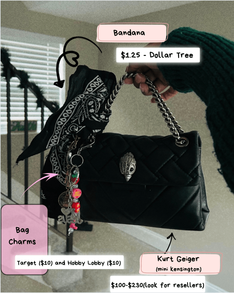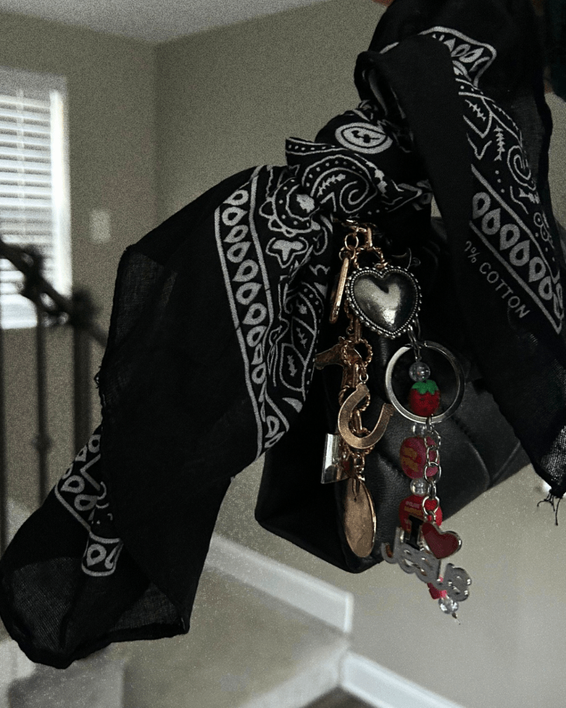 pictured here I have a bandana ($1.25 from Dollar tree) and two charms, gold hardware and silver. I bought the gold charm from target (roughly $10) and the silver ones from Hobby lobby. Sidebar for my christian girlies, hobby lobby is my go to for anything Jesus based that I am looking for! I never thought Id find a “i love Jesus” charm as cute as this one.