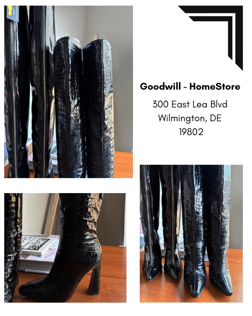 Its about 3pm eastern time and I’m sitting here in awe of two pairs of boots on a random not so random Tuesday. That entire statement was random; I know. I have this horrible habit of not getting gas before I’m at 10 miles or less so I had to get gas at the nearest station from my home, which is also about 1 minute from a goodwill store. A goodwill store thats really focused on homeware but also does have shoes and accessories like belts and purses. Im assuming you are gathering what happened here after I put gas in my car. Can you believe I found these?